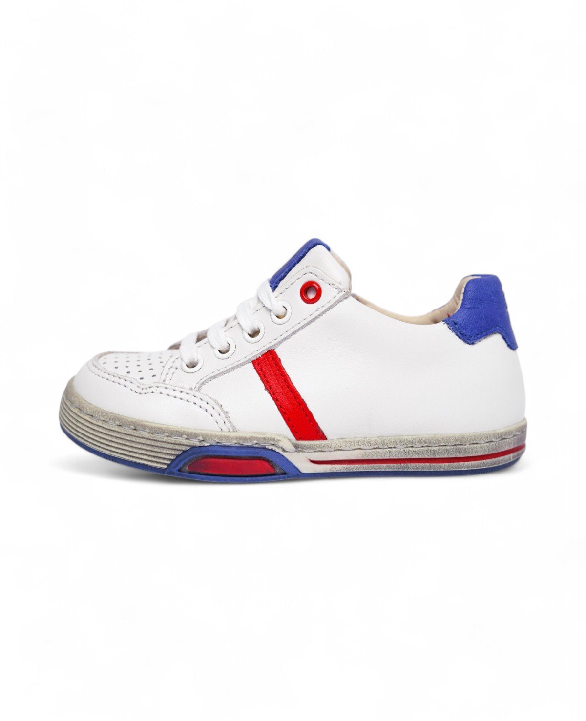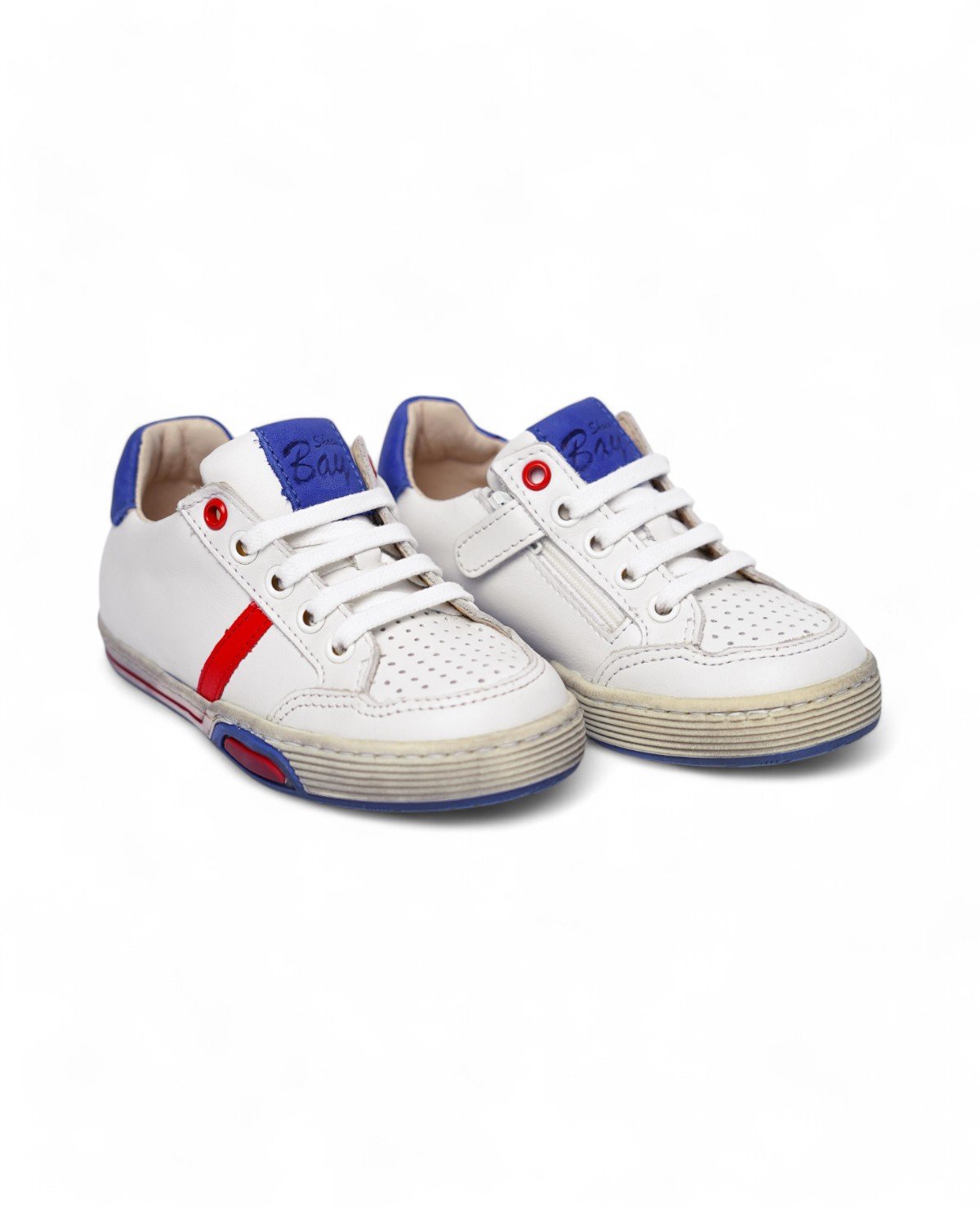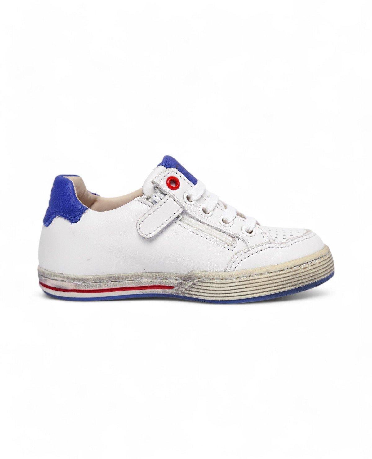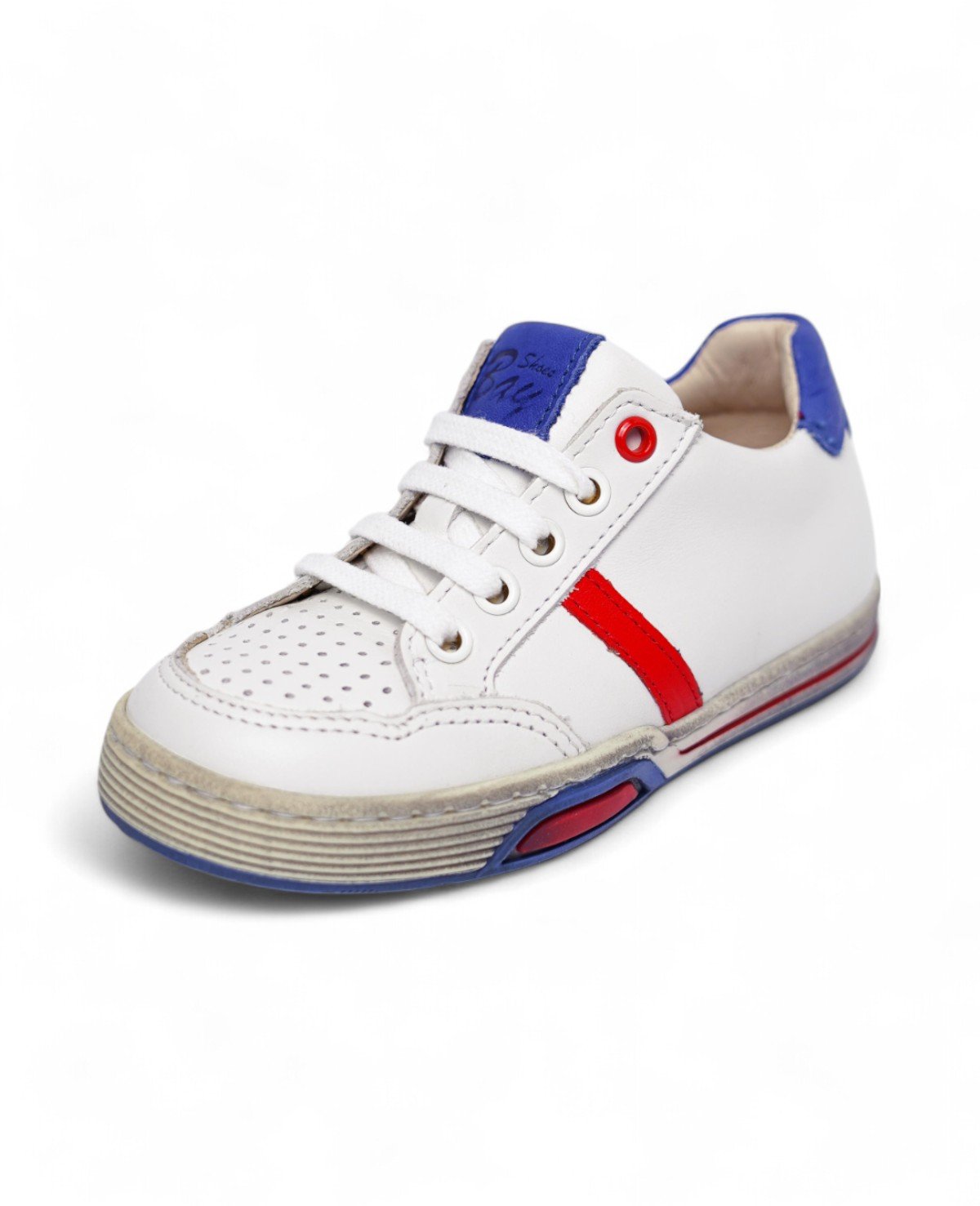 Baskets basses en cuir blanc rehaussées de touches bleu marine et d’une bande rouge dynamique. Leur design moderne et leur confort optimal en font des alliées idéales pour accompagner les petits explorateurs dans toutes leurs activités, qu’elles soient sportives ou décontractées.
