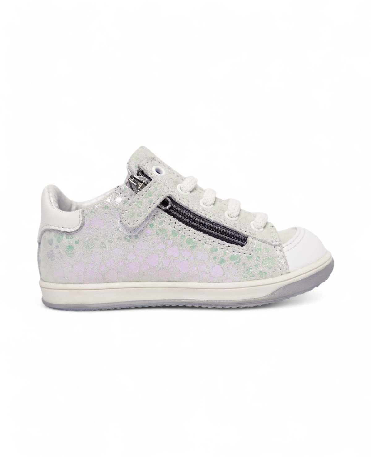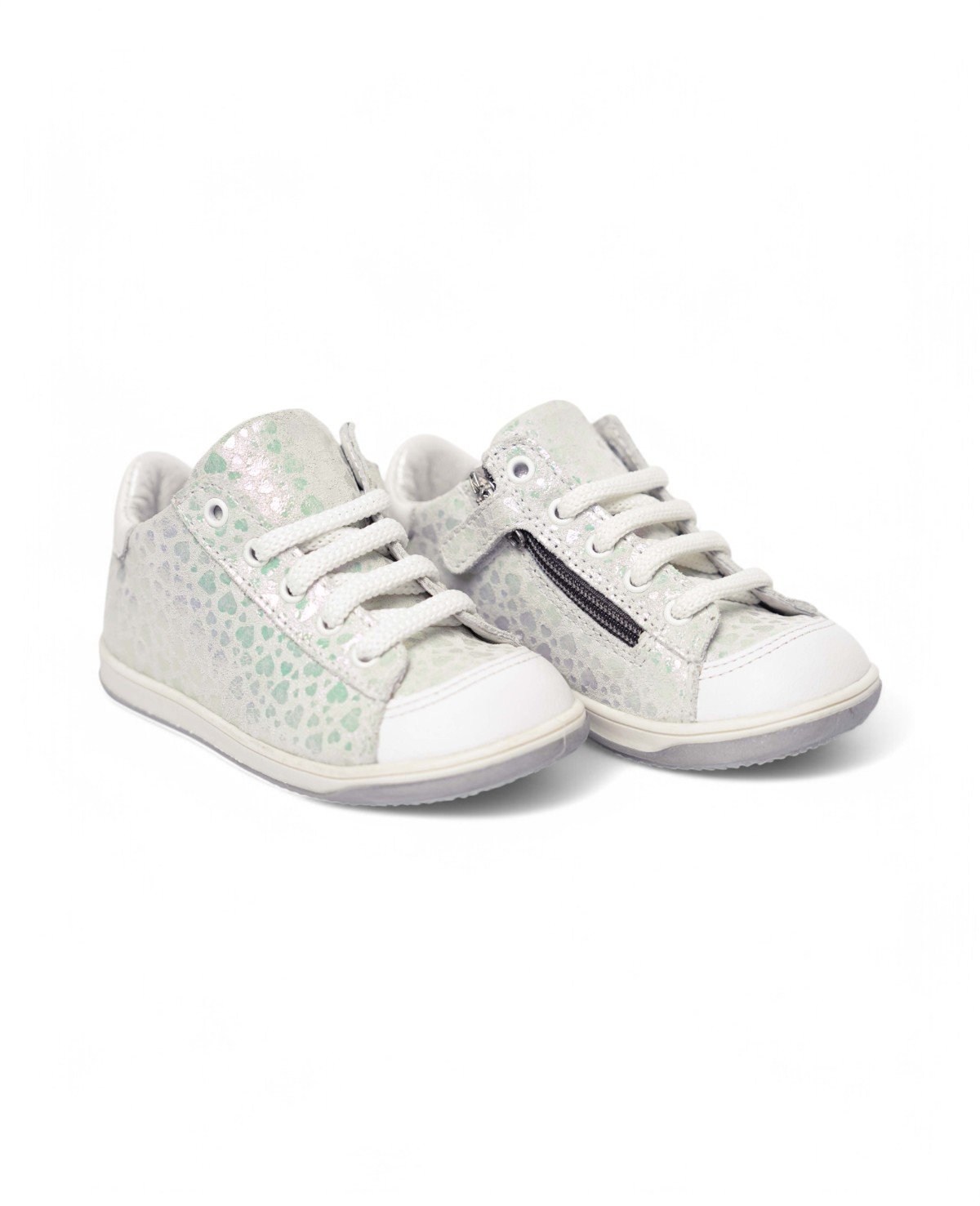 Ajoutez une touche d’éclat aux premiers pas de votre bébé fille avec les Baskets Maha Cœur Argent.