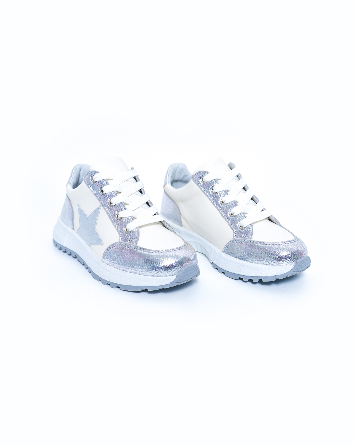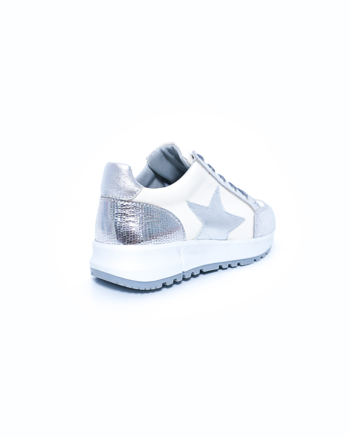 Baskets Cuir Argent Croco & Étoile Argent – Style et Confort