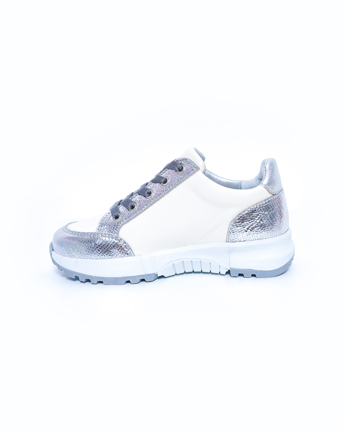 Offrez à votre enfant une touche d’élégance avec ces superbes baskets en cuir argent effet croco, ornées d’une étoile argentée assortie. Conçues pour allier style et confort.